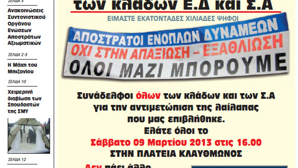 Διανύοντας τον τέταρτο χρόνο της δημοσιονομικής προσαρμογής οι Έλληνες Στρατιωτικοί οδηγηθήκαμε στην εξαθλίωση και στη φτωχοποίηση, με ακατανόητη εμμονή των Κυβερνήσεων να