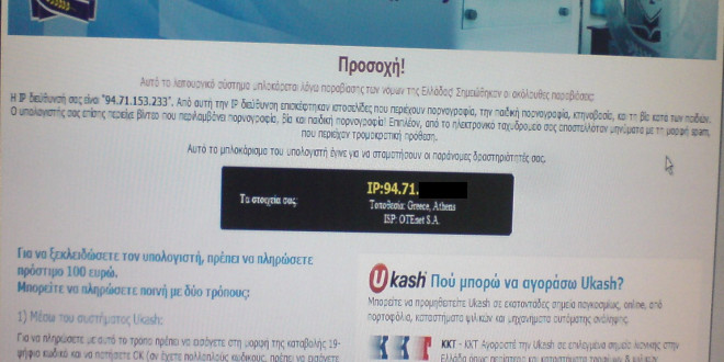 Πρόκειται για τον λεγόμενο «ιό της Αστυνομίας»- γνωστός και ως Police ή FBI Virus- ο οποίος ξαναχτύπησε, όπως γράφει η «Καθημερινή» και προειδοποιεί ανυποψίαστους χρήστες υπολογιστή πως έχουν διαπράξει το αδίκημα της… ζωοφιλίας μεταξύ άλλων, ζητώντας τους να πληρώσουν κάποιο πρόστιμο.