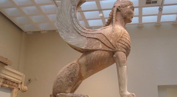 Σφίνξ- Σφιγγός = Προέρχεται από την αρχαία λέξη σφείς που χρησιμοποιείται ήδη από την εποχή του Ησίοδου και του Ομήρου και σημαίνει διττός = αυτός που είναι διπλός ή αυτός που ερμηνεύεται με δύο τρόπους όπως στην περίπτωση της Σφίγγας.Η Σφίγγα είναι φανταστικό πλάσμα της ελληνικής μυθολογίας, στενά συνδεδεμένο με το μύθο των Λαβδακιδών και συγκεκριμένα με εκείνον του Οιδίποδα. Οι αναπαραστάσεις της χρησιμοποιούνταν σε ασφαλισμένους χώρους ως σύμβολα προστασίας στον αιγυπτιακό, ελληνικό και ρωμαϊκό πολιτισμό. Σύμφωνα με τον Ησίοδο ήταν κόρη της Χίμαιρας και του Όρθρου ή κατά άλλους του Τυφώνος και της Έχιδνας. Η Έχιδνα είχε γεννήσει επίσης τον Κέρβερο, τον Όρθρο (φύλακας των κοπαδιών του Γηρυόνη), το Λιοντάρι της Νεμέας, τη Λερναία Ύδρα και τη Φαία της Κρομμυώνας. Της αποδίδουν επίσης τη Χίμαιρα, το δράκοντα της Κολχίδας, το φύλακα του χρυσόμαλλου δέρατος, το δράκοντα που φυλούσε τα χρυσά μήλα των Εσπερίδων και τον αετό του Προμηθέα.