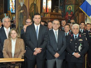 Κλείνοντας θέλω να σας συγχαρώ, να σας ευχηθώ κάθε καλό και κυρίως δύναμη πνευματική και σωματική στον καλό σας αγώνα και να παρακαλέσω τον Προστάτη Άγιο Αρτέμιο να σκεπάζει με την αγάπη του όλους εσάς και τις οικογένειές σας, την Ελληνική Αστυνομία και την Ελληνική κοινωνία».