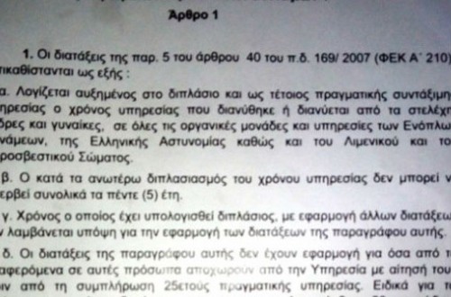 Από τον περασμένο Απρίλιο είναι στην αναμονή για κατάθεση στη Βουλή και ψήφιση αυτή η ρύθμιση στο Π.Δ. 169/2007 που αφορά Στρατιωτικές και Πολιτικές συντάξεις.