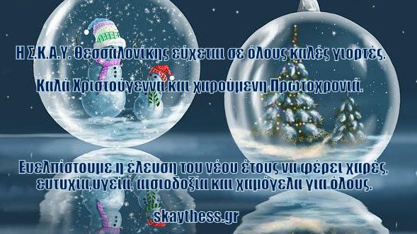 Η Σ.Κ.Α.Υ. Θεσσαλονίκης εύχεται καλές γιορτές σε όλους.