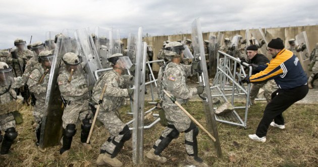 Η φωτογραφία είναι από την εκπαίδευση αμερικανικών δυνάμεων σε επιχειρήσεις καταστολής πλήθους στο Κόσσοβο.Η χρήση στρατιωτικών δυνάμεων σε τέτοιες επιχειρήσεις εκτός της περιμέτρου στρατοπέδων έχουν αρχίσει να γίνονται πολύ της …μόδας σε άλλες χώρες. Κάποιοι προσπάθησαν σχετικά πρόσφατα να τις επιβάλλουν και στην Ελλάδα. Ο νυν ΥΕΘΑ Νίκος Δένδιας είναι κατηγορηματικά αντίθετος και δεν το κρύβει.