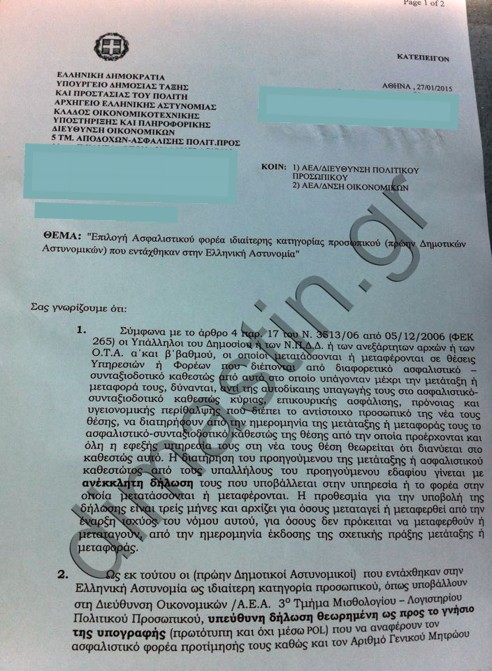 Έγγραφο ΑΕΑ προς τις Αστυνομικές Διευθύνσεις της χώρας σύμφωνα με το οποίο, καλούνται οι π. Δ.Α. να δηλώσουν μέχρι τις 28/3, τον
