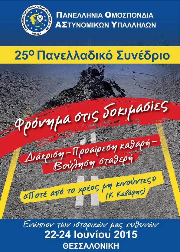Ήρθε η ώρα να υπηρετήσουμε το όραμα της αναβαθμισμένης εκπαίδευσης μας, της αναγνώρισης των σπουδών μας, το όραμα ενός δικαιότερου βαθμολογίου ειδικότερα για τους χαμηλόβαθμους της ΕΛ.ΑΣ, ενός σύγχρονου και αναβαπτισμένου καθηκοντολογίου και πειθαρχικού δικαίου, που δεν θα μετακυλύει μονίμως τις ευθύνες στην «καμπούρα του Αστυφύλακα».