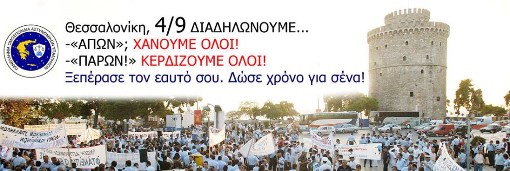 Το Διοικητικό Συμβούλιο της Ένωσης Στρατιωτικών Περιφέρειας Κεντρικής Μακεδονίας, ανακοινώνει πως και φέτος η Ένωση μας θα συμμετάσχει στην συγκέντρωση-διαμαρτυρία που έχουν εξαγγείλει οι Αστυνομικοί, Πυροσβέστες και Λιμενικοί της Πατρίδας μας για τις 4 Σεπτεμβρίου 2015 στη Θεσσαλονίκη, ενόψει των εγκαινίων της 80ης Διεθνούς Έκθεσης Θεσσαλονίκης από τον Πρωθυπουργό της Χώρας.