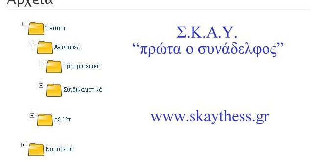 Όποιος συνάδελφος έχει έντυπα, έγγραφα, σχέδια, κλπ αρχεία που επιθυμεί να μοιραστεί μαζί μας μπορεί να μας τα στέλνει στο e-mail skaythess@gmail.com, ώστε να ανεβαίνουν στην αντίστοιχη κατηγορία της σελίδας μας