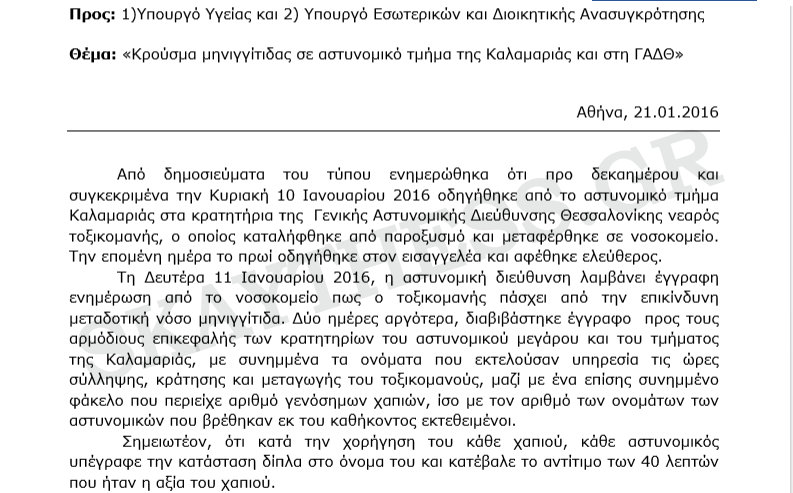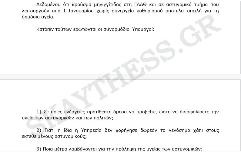 Το θέμα της υγιειονομικής απειλής με το περιστατικό μηνιγγίτιδας που απασχόλησε την συμπρωτεύουσα προ ημερών, έφτασε στη βουλή κατόπιν σχετικής ερώτησης που κατατέθηκε από το Βουλευτή της Β’ Θεσσαλονίκης κ.Αριστείδη ΦΩΚΑ.