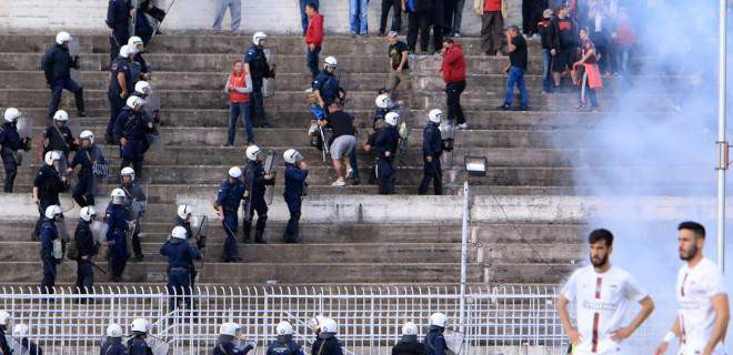 Αναγκαζόμαστε να λαμβάνουμε μέτρα σε γήπεδα που δεν έχουν καν λάβει την προβλεπόμενη άδεια από τη διοργανώτρια αρχή, με πρόχειρο επιχειρησιακό σχεδιασμό από τους διοικούντες, που αντί να αναλάβουν τις ευθύνες τους, τάχιστα και χωρίς ενδοιασμούς, ψάχνουν εξιλαστήρια θύματα για να εξιλεωθούν, όπως άμεσα έσπευσε να πράξει και ο τοπικός διευθυντής. Ακόμα ψάχνουν τα κλειδιά από τις πόρτες προκειμένου να εξέλθουν οι διμοιρίες για να σώσουν τον συνάδελφο-οδηγό υπηρεσιακού λεωφορείου που δέχονταν επίθεση από μαινόμενους οπαδούς της φιλοξενούμενης.