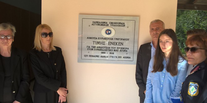 Με μια σεμνή τελετή, παρουσία της οικογένειάς του, η Ομοσπονδία τίμησε τη μνήμη και την προσφορά του στο συνδικαλιστικό μας αγώνα, ονοματίζοντας μία Αίθουσα Συνεδριάσεων, που βρίσκεται στα γραφεία μας στην οδό Μεσογείων 96, ως Αίθουσα Κυριακούλη Γρηγοράκου.