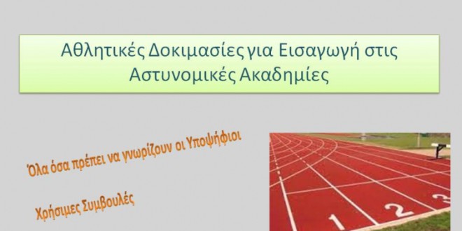 -οδηγίες για την καλύτερη προετοιμασία τους για τις αθλητικές δοκιμασίες που θα γίνουν για την εισαγωγή τους στις αστυνομικές και στρατιωτικές σχολές .