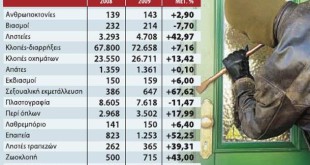 Σταθερή μείωση παρουσιάζουν από τις αρχές του 2013 οι βασικές κατηγορίες αδικημάτων (ληστείες, κλοπές, διαρρήξεις, ανθρωποκτονίες), σύμφωνα με στατιστικά στοιχεία που έδωσε στη δημοσιότητα η ΕΛ.ΑΣ. Συγκεκριμένα σε σύγκριση με το α’ εξάμηνο του 2012, καταγράφηκαν 539 λιγότερες ληστείες, 7.871 λιγότερες κλοπές – διαρρήξεις και 15 λιγότερες ανθρωποκτονίες. Ειδικά όσον …
