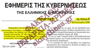 Αθήνα, 23 Ιανουαρίου 2016 Αρ. Πρωτ.: 200/4/168 Α Ν Α Κ Ο Ι Ν Ω Σ Η Σας γνωρίζουμε ότι, απογευματινές ώρες της χθες, δημοσιεύθηκε στην Εφημερίδα της Κυβερνήσεως (Αρ. Φύλλου 8 – Τεύχος Α΄) το προεδρικό διάταγμα υπ’ αριθμ. 4, που αφορά τροποποιήσεις στην Ιεραρχία, καταστάσεις και εξέλιξη των …